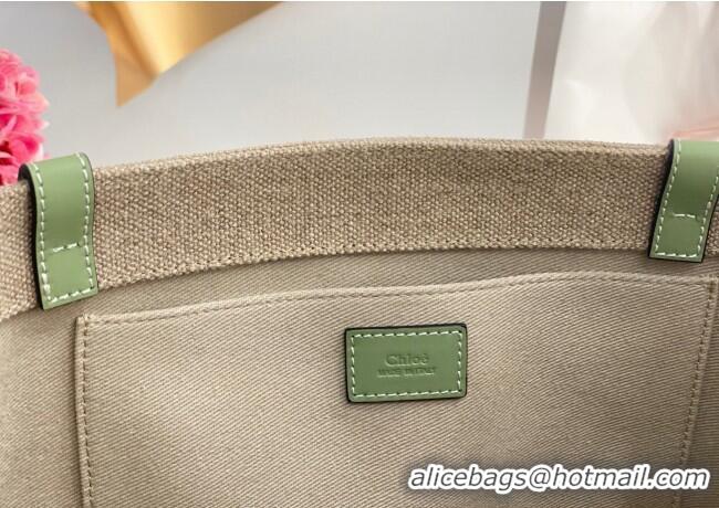 > Chloe Handbag > Trendy Design Chloe Large Woody Tote Bag in Linen Canvas and Calfskin Leather 1120 Light Green 2025