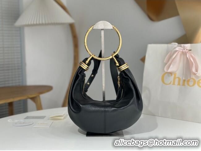 Trendy Design Chloe Small Bracelet Hobo bag in Shiny Grained Calfskin C0504 Black 2024
