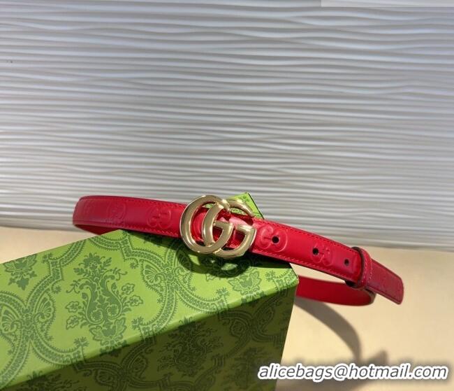 Super Quality Gucci GG Embossed Leather Belt 2cm with GG Buckle 1127 Red/Gold 2024