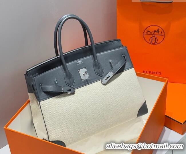 Famous Brand Hermes Birkin 35cm Bag in Canvas and Swift Calfskin Leather H0035 Slate Grey/Silver 2026