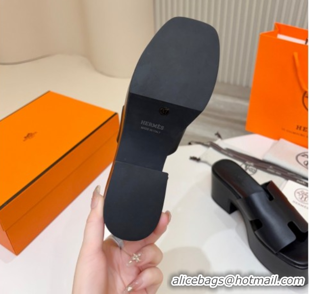 Trendy Design Hermes Calfskin Platform Slides Sandal 7.5cm Black 2025 H082003 0820022