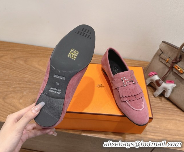 Durable Hermes Royal Loafers in Suede with Fringe Pink 2025 H082006 0820048