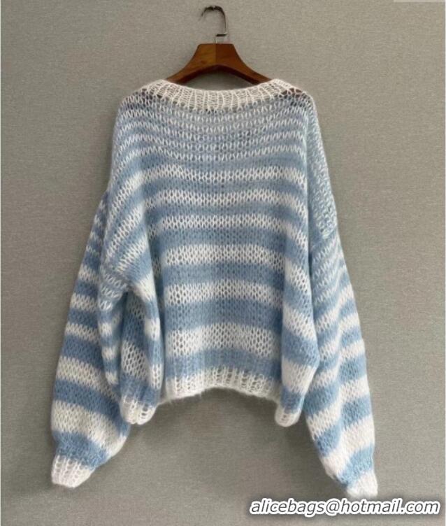 > Clothes Online > Loewe Clothes > Trendy Design Loewe Mohair Crochet Striped Sweater 0904 White/Blue 2025