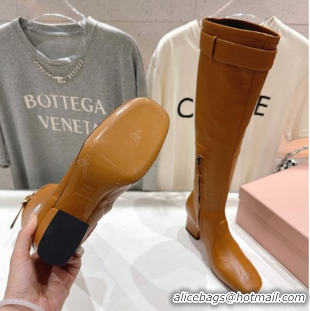 Purchase Miu Miu Nappa Leather Heel High Boots 6.5cm with Buckle Caramel Brown 5W548E 1024145 2025