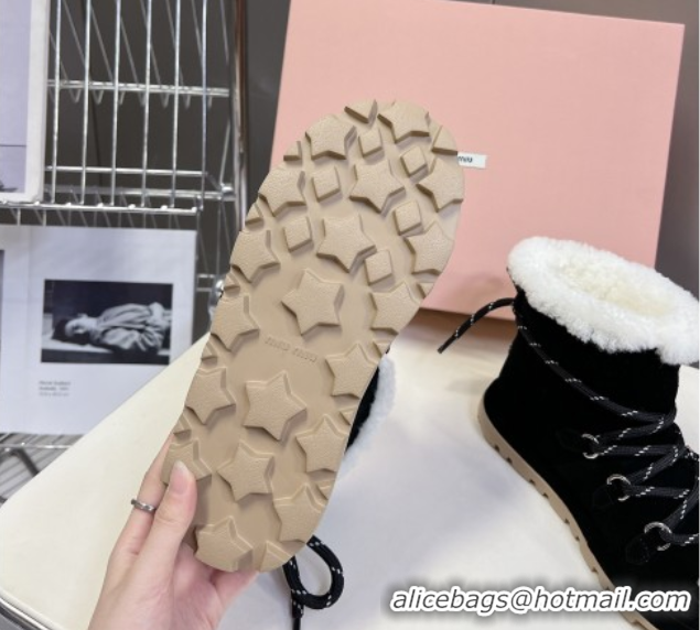 Stylish Miu Miu Suede and Wool Laced-up Flat Ankle Boots Black MM102407 1024146 2025