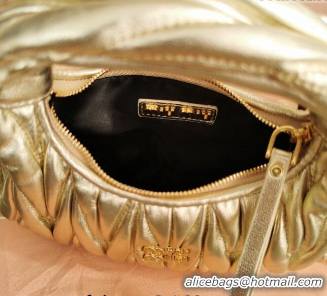 Trendy Design Miu Miu Wander Matelasse Nappa Leather Hobo Mini bag 5BP078 Gold