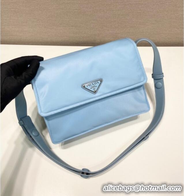 Famous Brand Prada Traveller small padded Re-Nylon shoulder bag 1BD313 Light Blue 2025