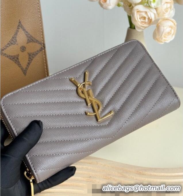 Inexpensive Saint Laurent Cassandre Matelasse Zip Around Wallet in Grained Leather 358094 Grey 2025