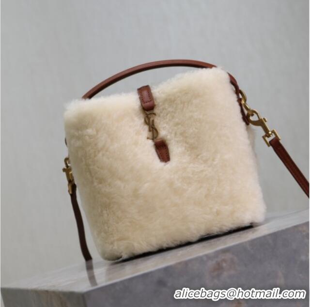 > Yves Saint Laurent Bag > Trendy Design Saint Laurent LE 37 Mini Bucket Bag in Shearling 765870 Cream White 2025
