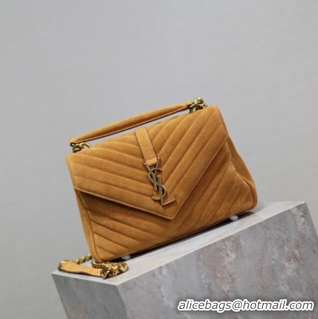 Top Grade Saint Laurent Medium Monogram College Bag in Suede 392737 Clay Yellow 2025