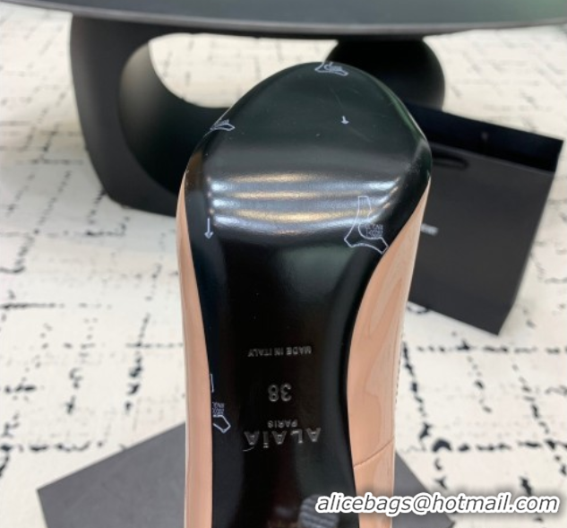Your Position: Home > Shoes Plaza > Alaia Shoes > Duplicate Alaia Decollete Pumps 10.5cm in Patent Calfskin with Ankle Strap Nude 1223062