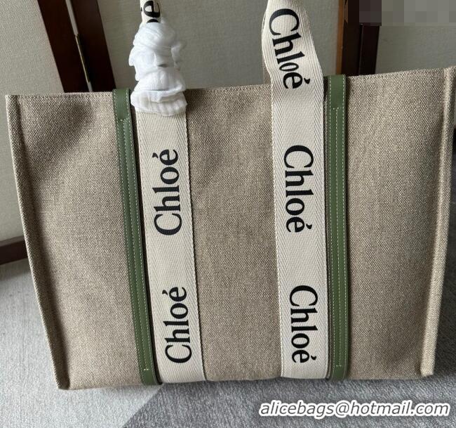 > Chloe Handbag > Unique Discount Chloe Woody Canvas Large Tote Bag 6064 Green 2024