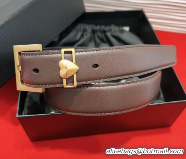 Well Crafted Saint Laurent Calfskin Leather Belt 3cm with Heart Charm YSL091201 Dark Brown/Gold 2025
