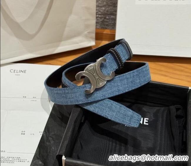 New Design Celine Denim and Leather Belt 2.5cm with Triomphe Buckle CE0911099 Blue/Black/Silver 2025