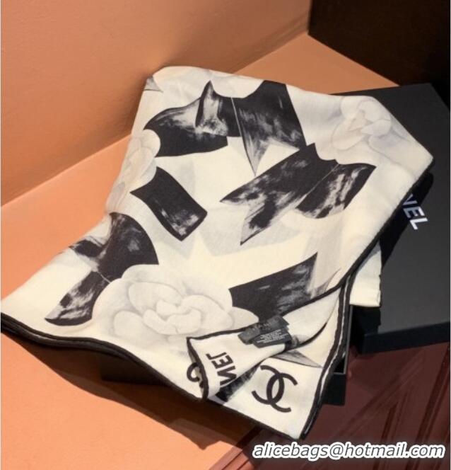 Unique Grade Chanel Camellia Cashmere & Silk Square Scarf CH011604 White 2026