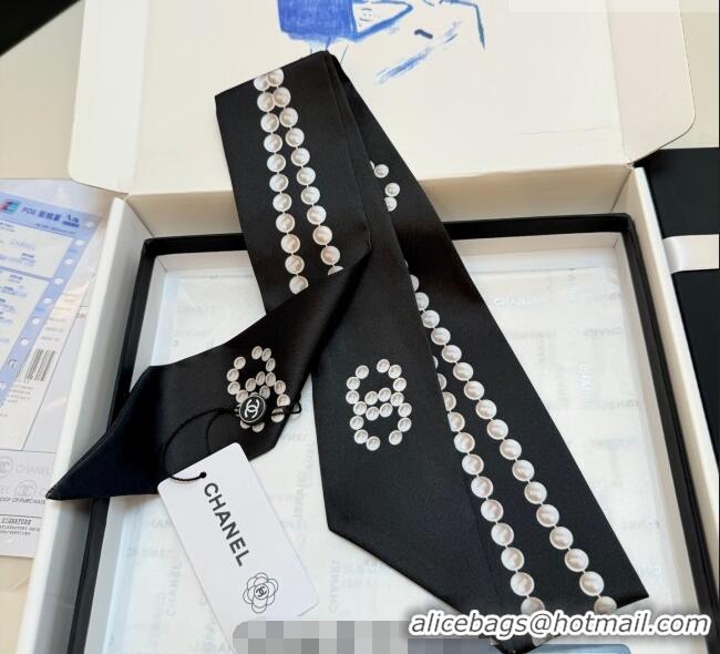 Best Quality Chanel Beads Silk Scarf 6x120cm CH010608 Black 2026
