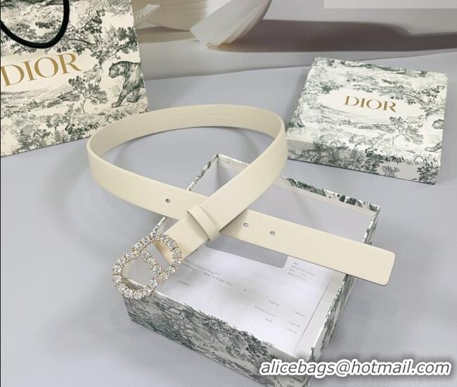 Famous Brand Dior Calfskin Leather Belt 3cm with Strass CD Buckle 0108 White/Gold 2025