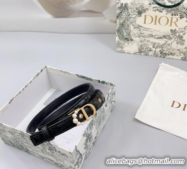 Unique Grade Dior Oblique Leather Belt 2cm with Pearls CD Buckle 0108 Black/Gold 2025
