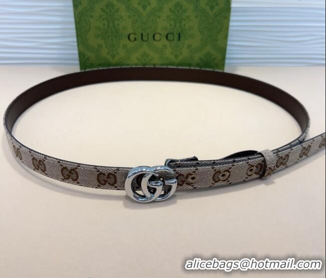Hot Sell Cheap Gucci GG Canvas Belt 2cm with GG Buckle 0708 Beige/Silver 2024