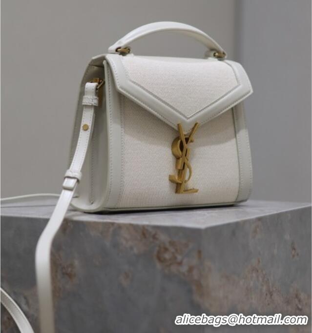 Unique Grade Saint Laurent Cassandre Mini Bag in Cotton Linen and Leather 602716 White 2025