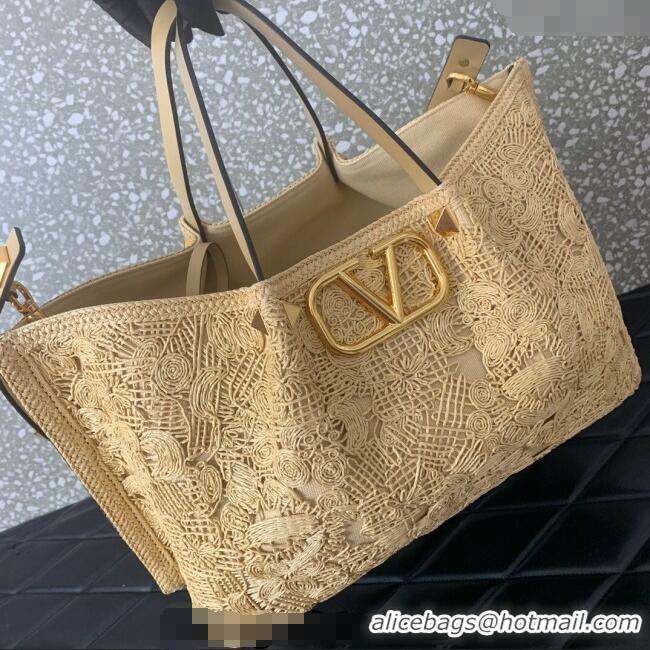 Unique Grade Valentino Medium VLogo Shopping Summer Tote bag in Lace-Effect Raffia Straw 0220L 2024