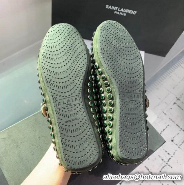 > Shoes Plaza > Alaia Shoes > Unique Style Alaia Ballet Flat in Suede with Strass Dark Green 1223024