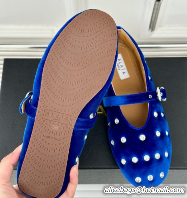> Shoes Plaza > Alaia Shoes > Unique Style Alaia Ballet Flats in Puffer Velvet with Strass Blue 1112017