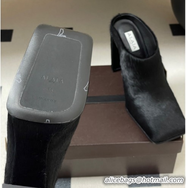 Unique Style Alaia Square Mules 10cm in Haircalf Black 2026 AL102908 1029137