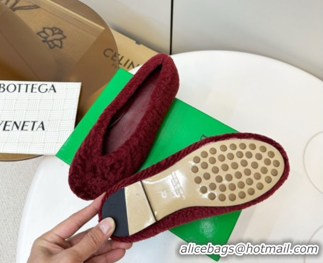 Good Product Bottega Veneta Rosa Ballerina Flat in Shearling Burgundy 1027147