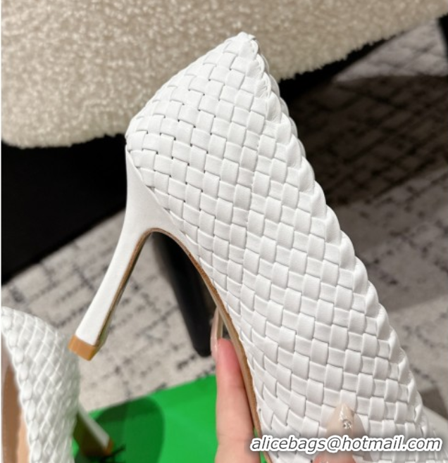 Top Design Bottega Veneta Sofia Heel Pumps 9cm in Intreccio Leather White 50823028