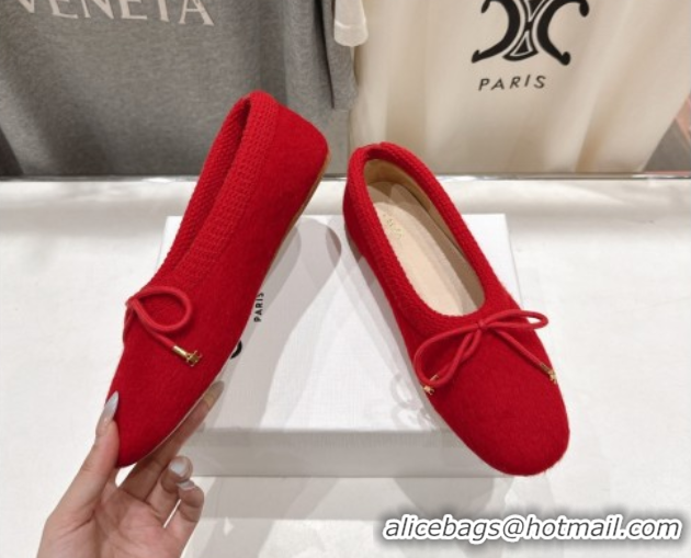 Stylish Celine Abby Ballerinas Flat in Alpaca Wool Fabric with Bow Red 1024024
