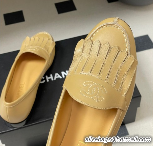 Top Grade Chanel Calfskin Leather Flat Loafers with Tassel Beige 2025 CH103104 1031110