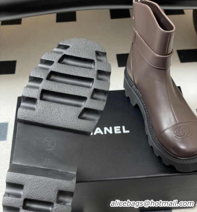Unique Style Chanel Calfskin Leather Platform Ankle Boots with Logo Strap CH122304 Brown 2026