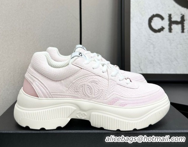 Unique Style Chanel Calfskin Leather and Knit Platform Sneakers Pink 2025 CH110104 1101048