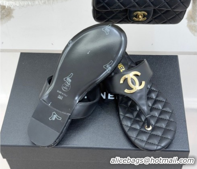 Good Quality Chanel Lambskin Leather Flat Slides Sandal CH030609 Black 2026