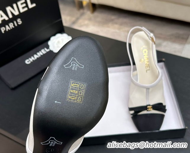 Discount Chanel Calfskin Slingback Pumps 7cm with Bow White 020733