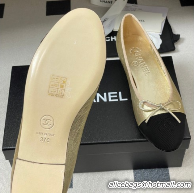 Good Product Chanel Metallic Leather & Grosgrain Ballet Flats with Bow G02819 Gold/Black 2026