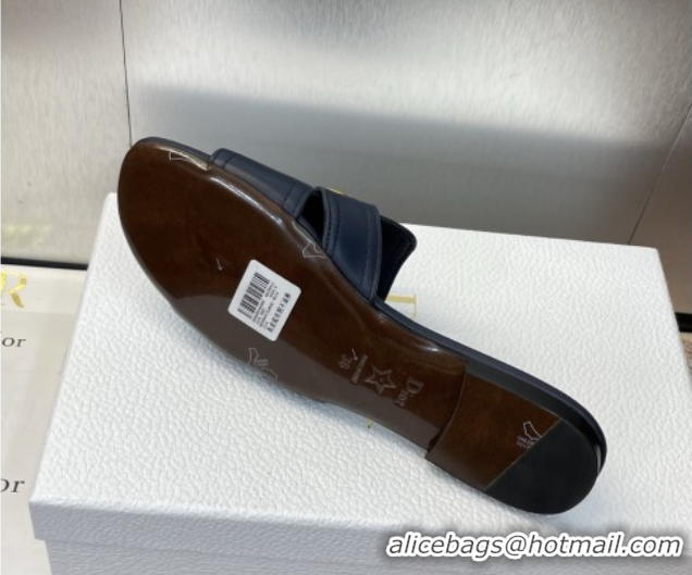 Unique Style Dior 30 Montaigne Flat Slides Sandal in Calfskin Leather Deep Blue DR082205 0822100