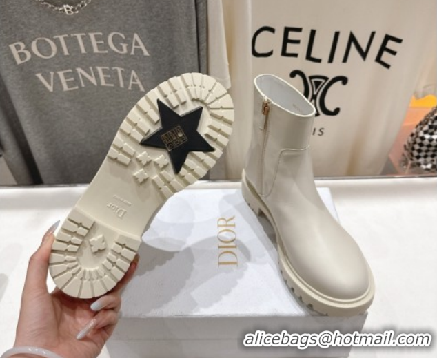 Classic Hot Dior D-Major Ankle Short Boots in White Calfskin and Shearling 111541