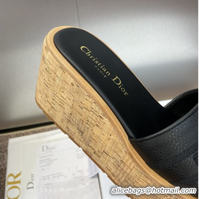 Best Quality Dior Dway Platform Wedge Slides Sandal 10cm in Grained Calfskin Black 0822048