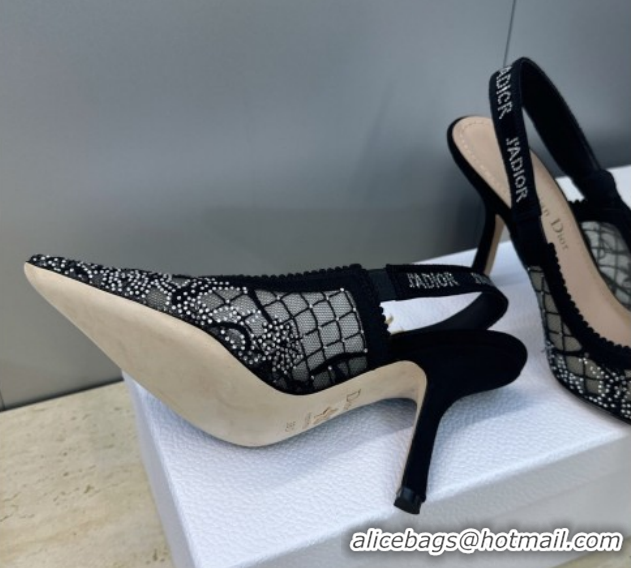 Pretty Style Dior J'Adior Slingbacks Pump 9.5cm in Transparent Mesh Embroidered with Millefiori Motif in Silver-Tone Strass 2026 0302048