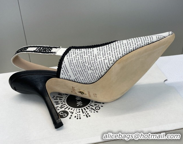 Unique Style Dior J'Adior Slingbacks Pump 9.5cm in Calfskin Leather with White and Black Newspaper Print 2026 0302036