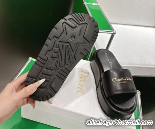 Popular Style Dior D-Lane Platform Slides Sandal in Padded Lambskin Leather Black 2026 0302100