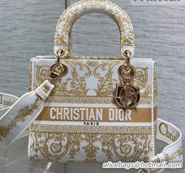 Unique Style Dior Medium Lady D-Lite Bag in Latte White and Gold-Tone Dioresque Butterfly Cornely Embroidery 0126062 202