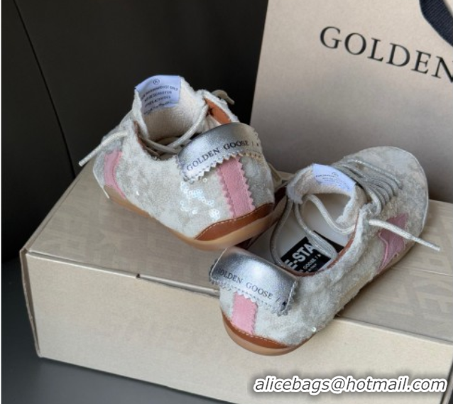 Luxurious Golden Goose Women's True-Star in white sequins with pink star and silver leather heel tab 0902108