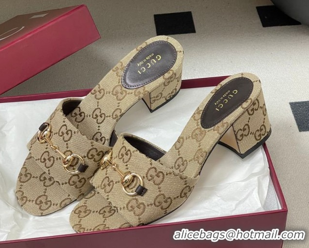 Good Product Gucci GG Canvas Heel Slides Sandal 5.5cm with Horsebit 8548829 Beige 2026