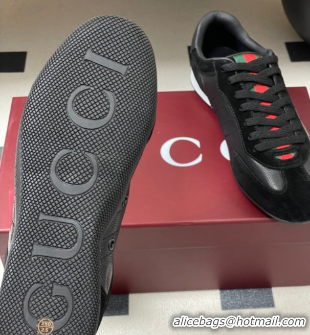 Unique Style Gucci Suede and Grained Leather Sneakers Black 1021008