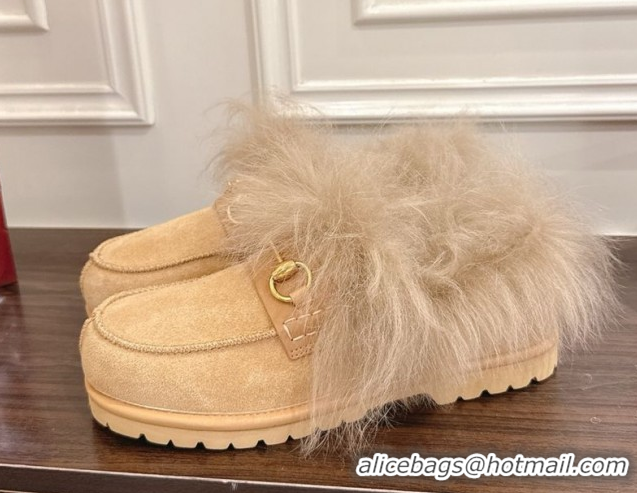 Good Looking Gucci Suede and Wool Flat Loafers with Horsebit Beige Yellow 2025 GG102001