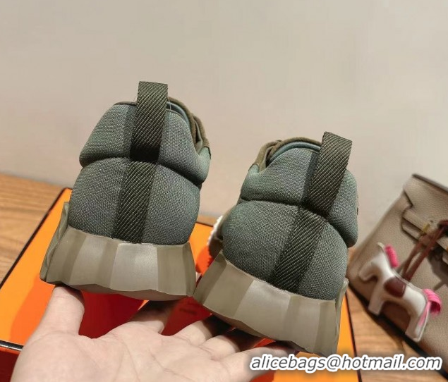 Top Grade Hermes Bouncing Sneakers in Cotton Canvas and Suede Green/Brown 1222073 2026
