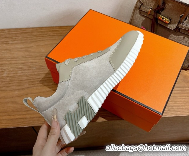 Unique Style Hermes Bouncing Sneakers in Suede and Calfskin Leather Grey/Green 1024015